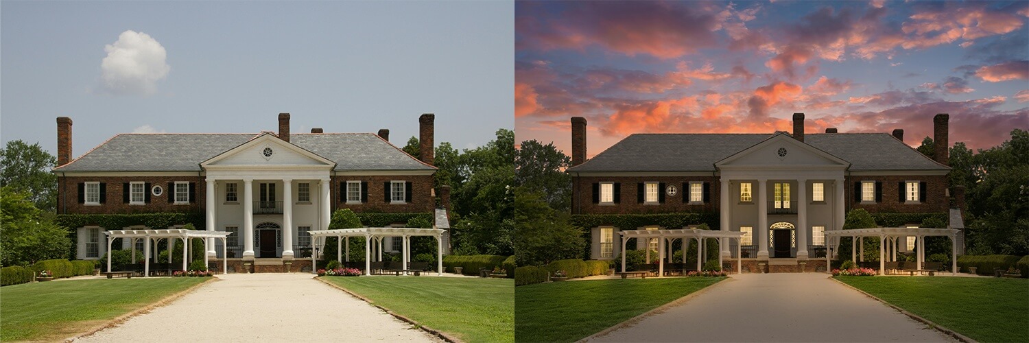Our image editing professionals replace the outer sky with breath-taking sunrise or sunset colors to create a visually appealing image of the architectural property.